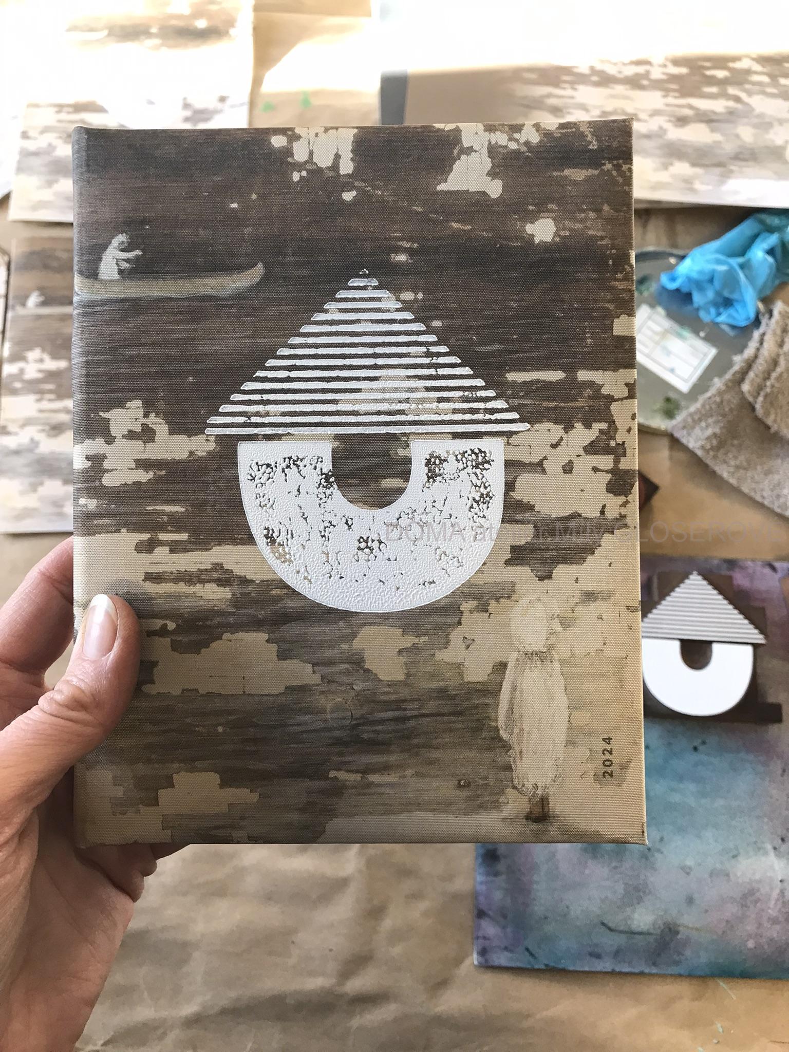 Díváte se na diář pro rok 2024. Motiv "Vítání" jsem dotvořila otiskem tiskařského štočku a tiskařské barvy. Byla to milá hra - tvar - symbol - otisk. Hledejte a nacházejte si v motivu své vlastní významy.