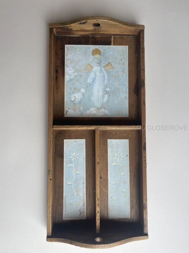 Obrázky jsou malované akrylovými barvami a ošetřeny závěrečným lakováním, stejně tak jako všechny další dřevěné plochy tácu.